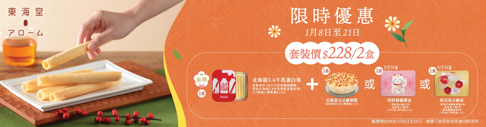 東海堂北海道3.6牛乳蛋白卷(20條裝) (電子禮券)