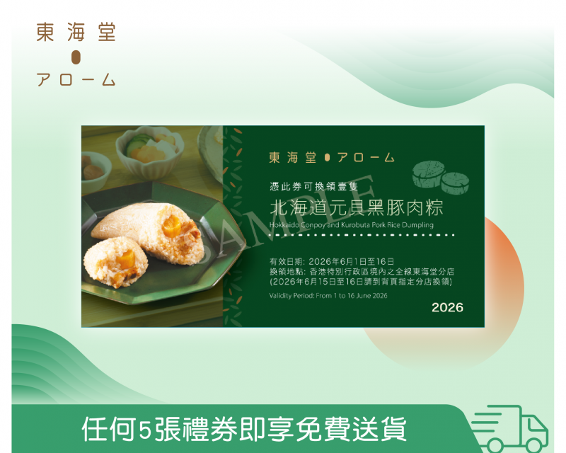 東海堂北海道元貝黑豚肉粽禮券 (禮券送貨)