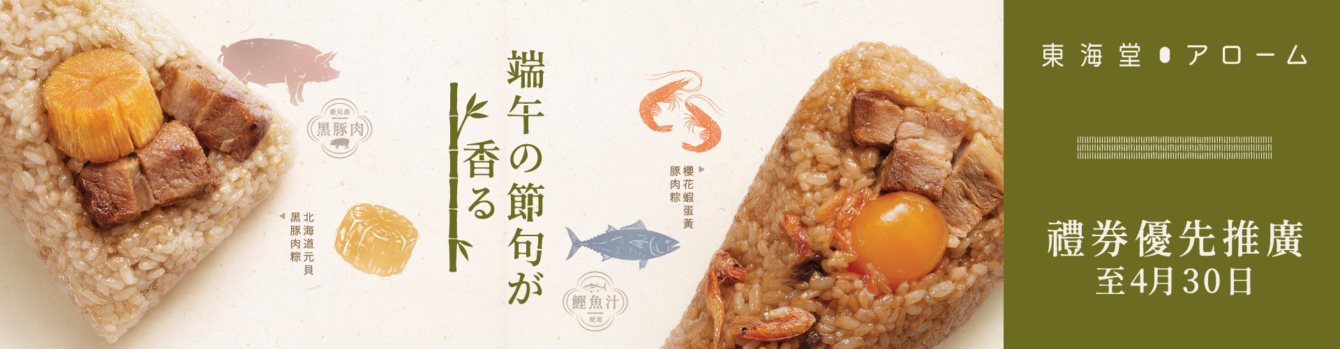 東海堂北海道元貝黑豚肉粽禮券 (禮券送貨)
