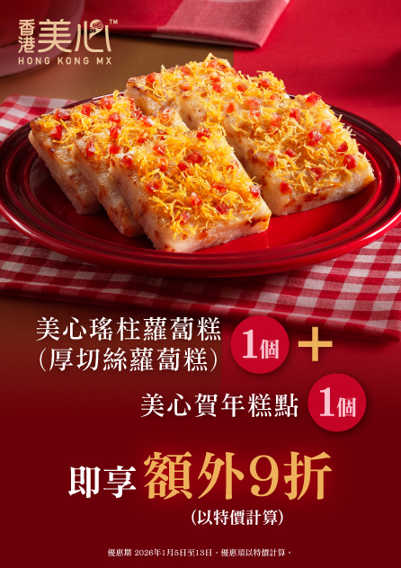 1. 額外9折優惠只限美心指定產品,優惠須以特價計算,推廣優惠期2026年1月5日至13日。