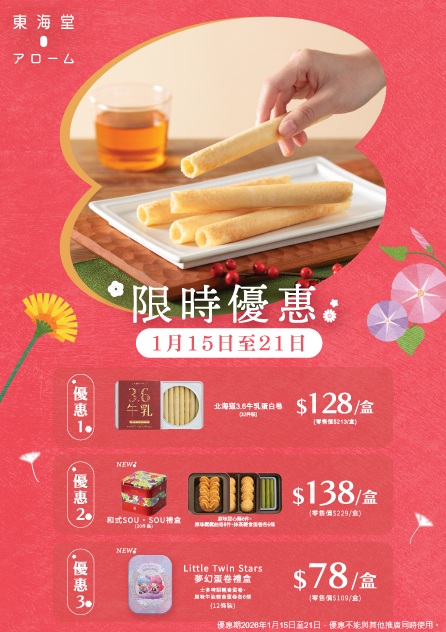 2026年1月15日至21日 選購東海堂指定產品即可享限時優惠,仲唔快啲黎選購心水產品!