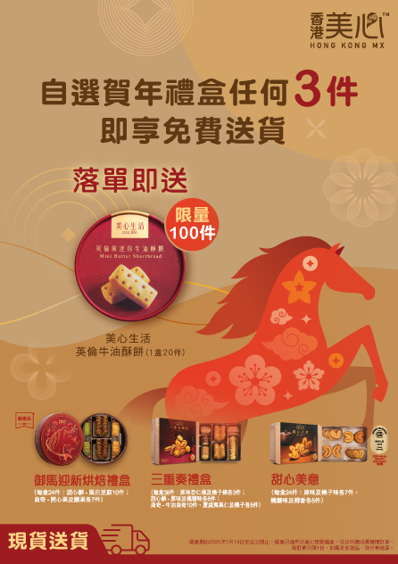 1. 推廣優惠只限指定美心現貨送貨產品,推廣優惠期由2026年1月14日至31日,數量有限,送完即止。