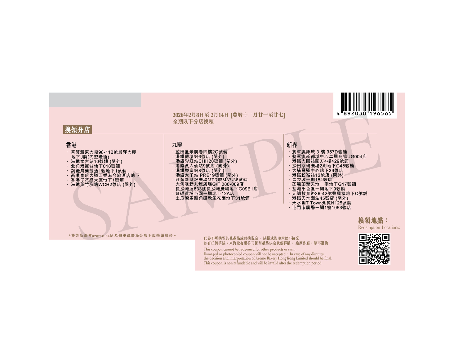 禮券換領日期: 2026年2月8日至2026年2月14日