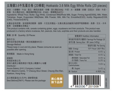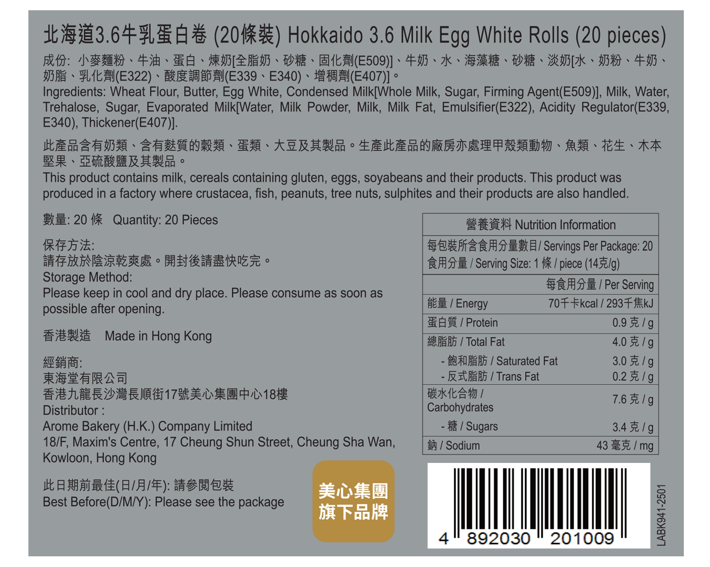 Arome Hokkaido 3.6 Milk Egg White Rolls (20 pcs) Voucher