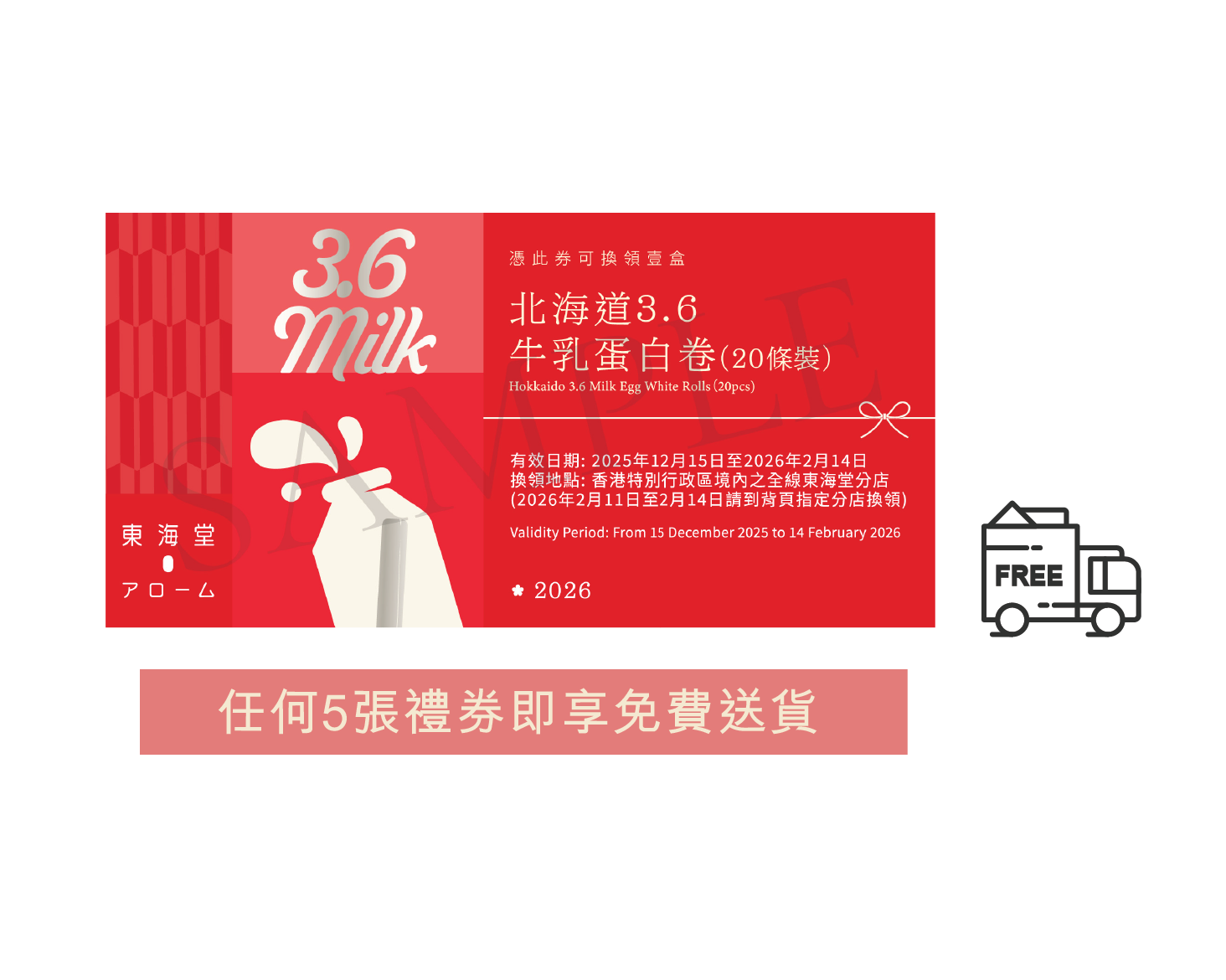 東海堂北海道3.6牛乳蛋白卷禮券 (20條裝)(禮券送貨)