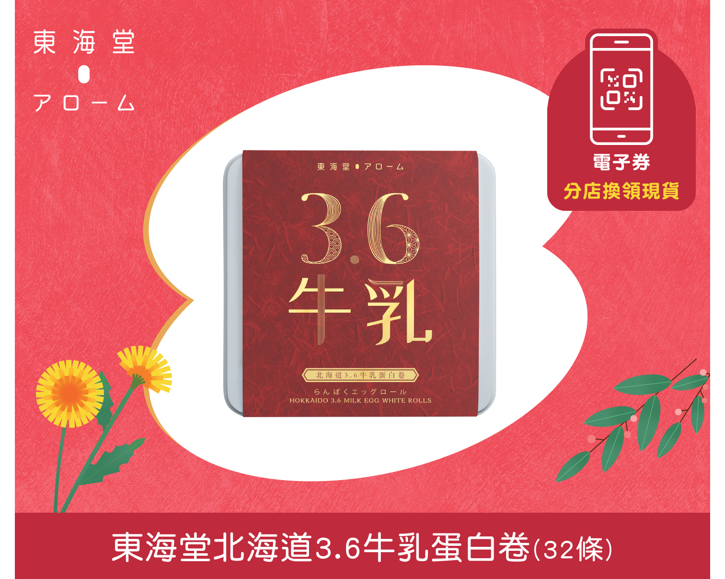 東海堂北海道3.6牛乳蛋白卷(32條裝) (電子禮券)