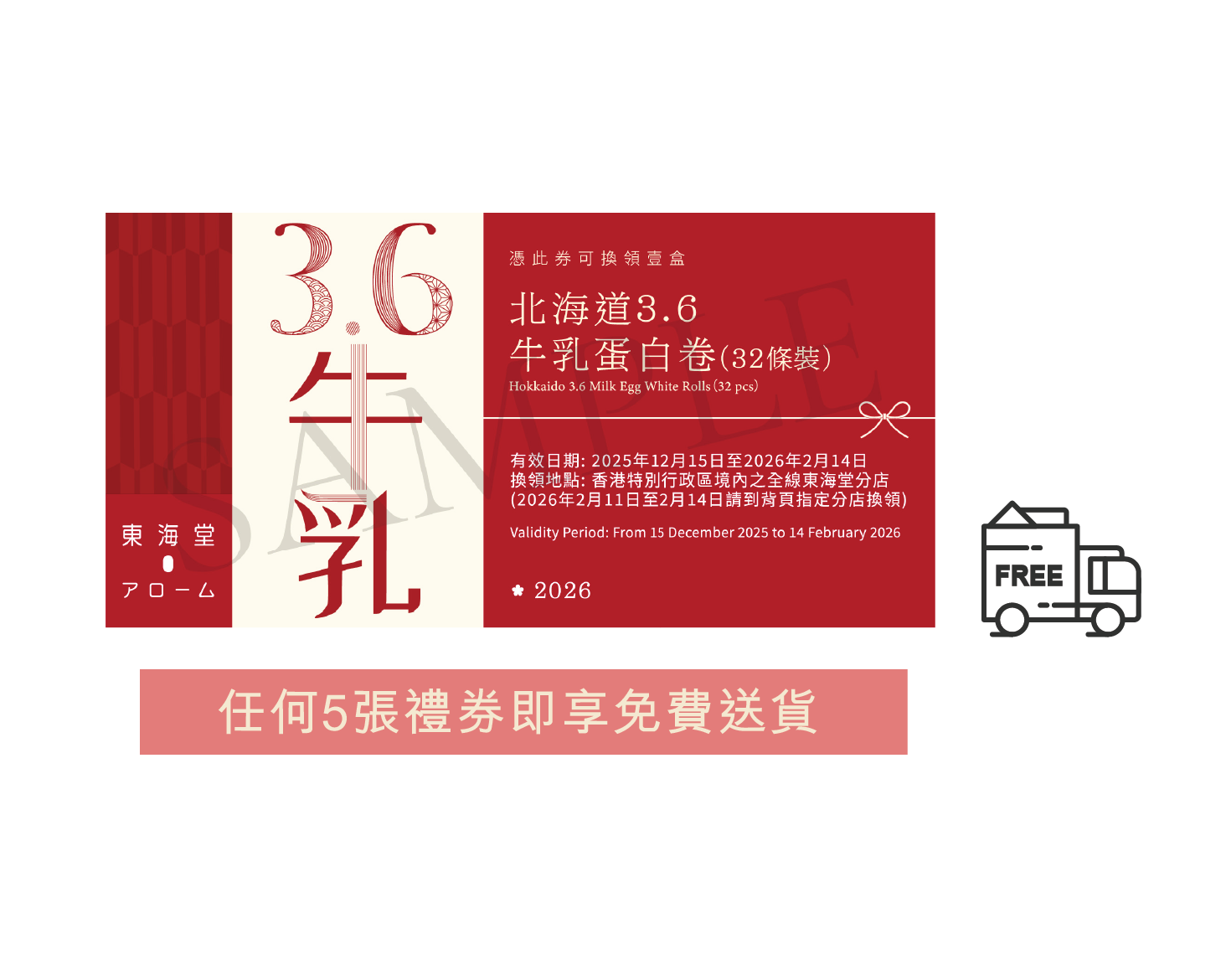 東海堂北海道3.6牛乳蛋白卷禮券(32條裝)(禮券送貨)