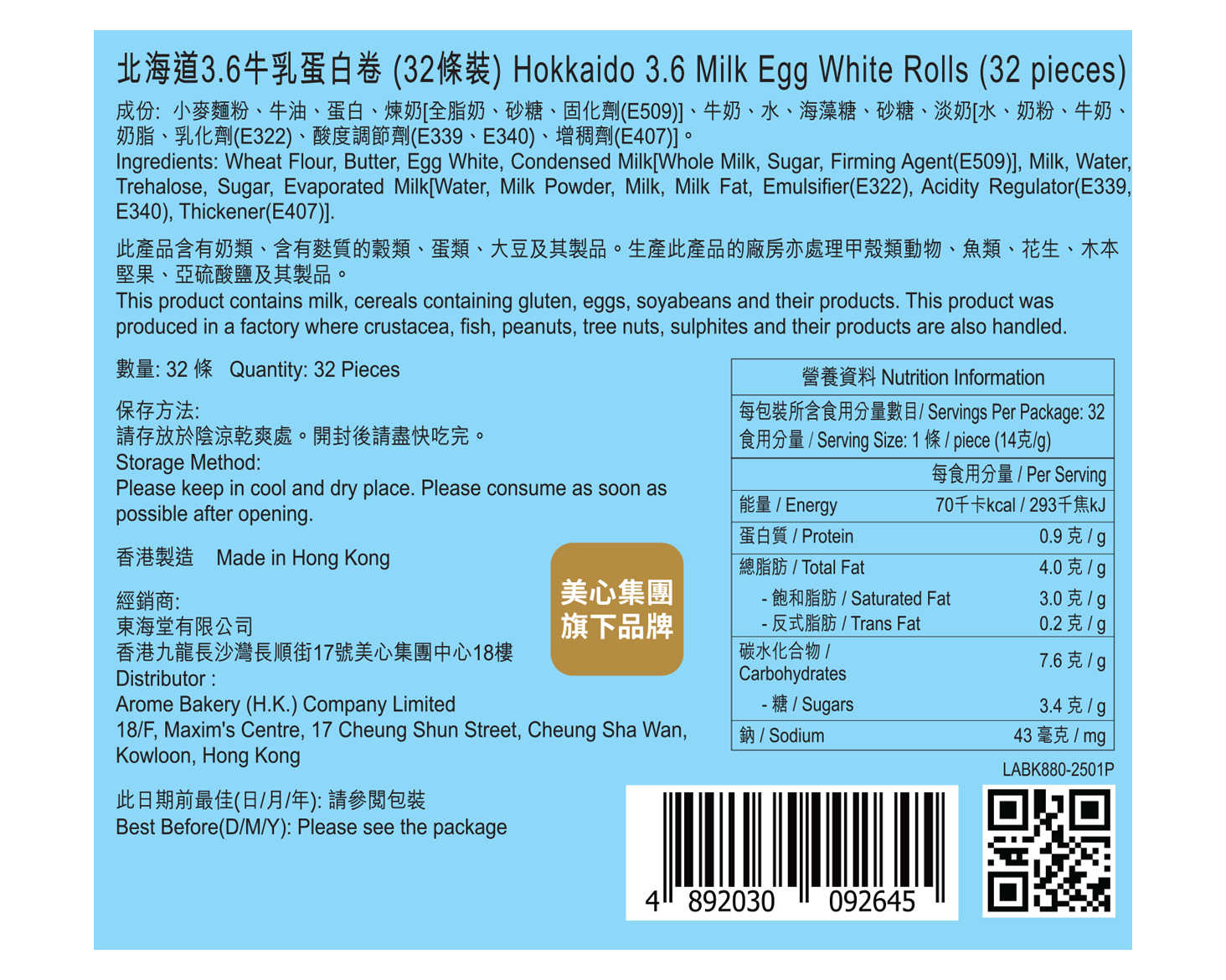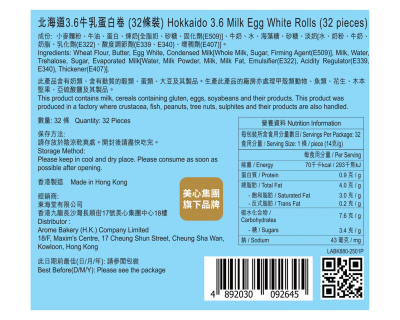 Arome Hokkaido 3.6 Milk Egg White Rolls (32pcs) Gift Voucher