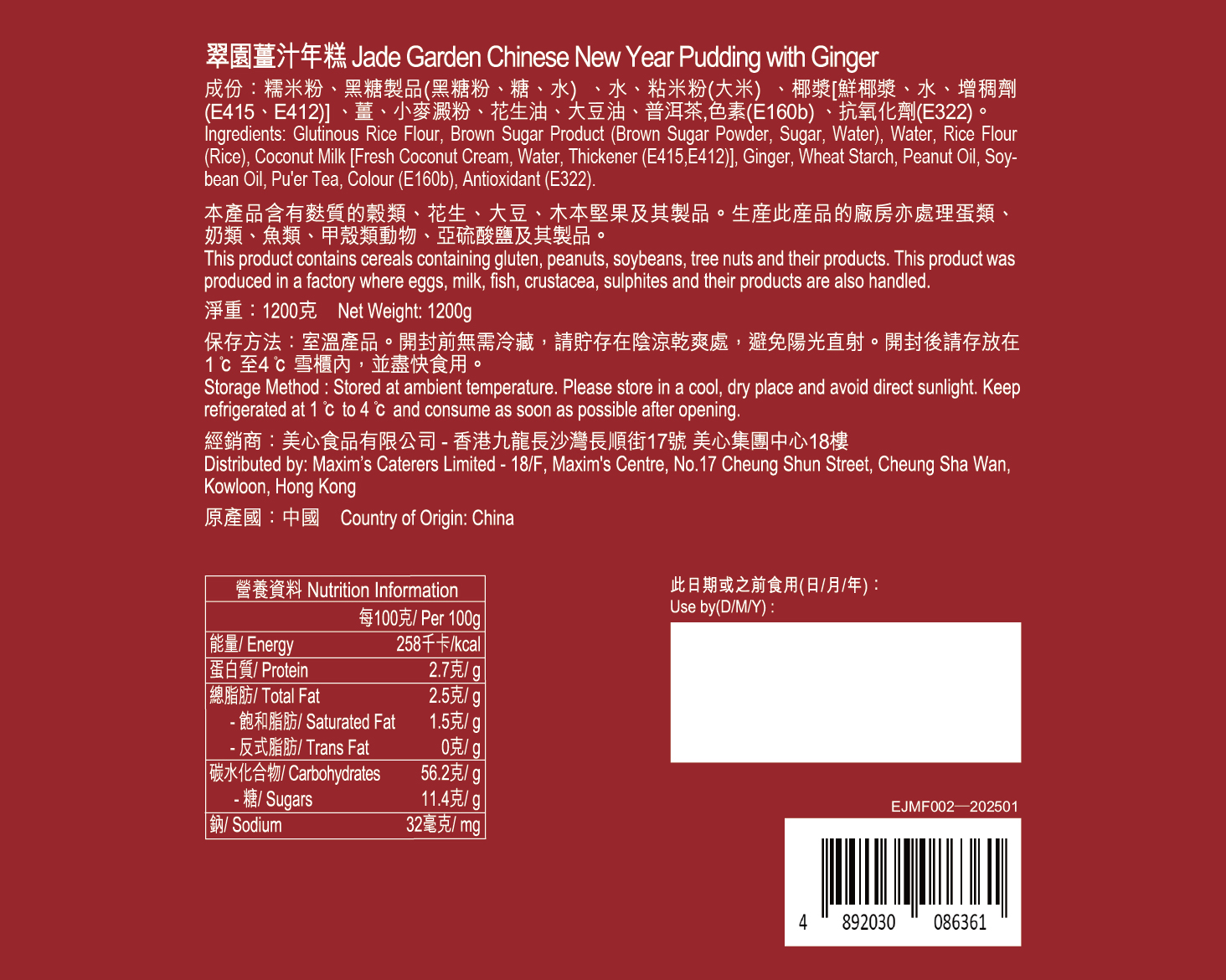 Jade Garden Chinese New Year Pudding with Ginger Voucher