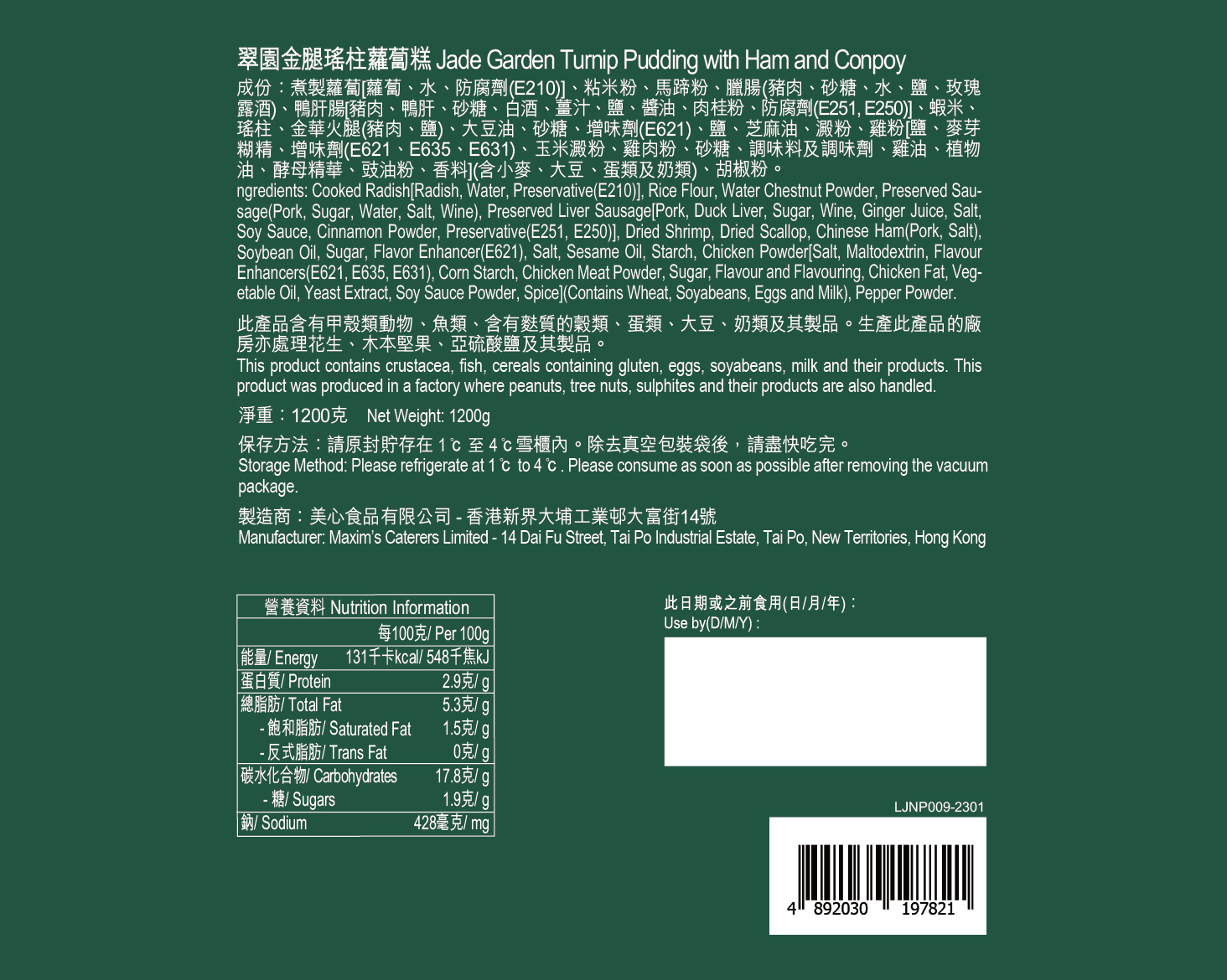 Jade Garden Turnip Pudding with Ham and Conpoy Gift Voucher