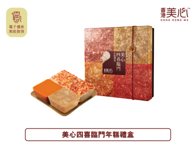 禮盒內有金腿瑤柱蘿蔔糕(約485克)、芋頭糕(約485克) 、椰汁年糕(約535克)及古法馬蹄糕(約485克)各一個,滿盒四喜臨門;以大方典雅禮盒包裝,適合賀年送禮或家庭窩心聚會分享。