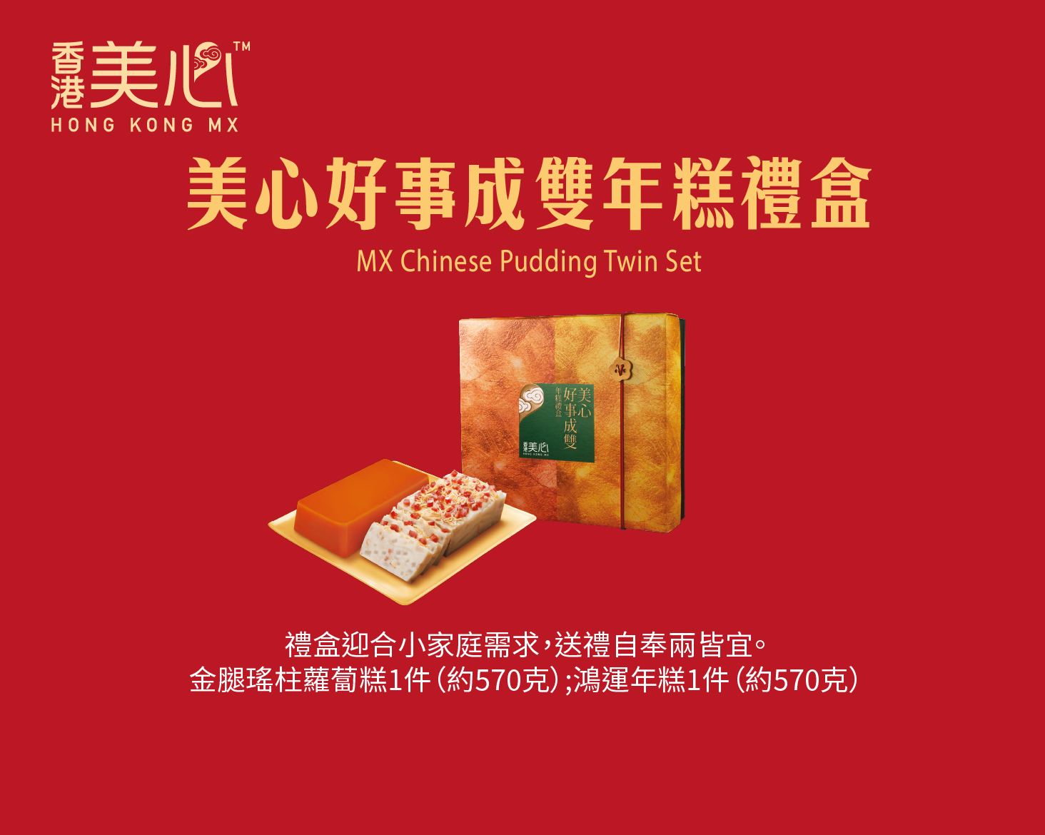 禮盒包括金腿瑤柱蘿蔔糕(約570克)及鴻運年糕(約570克),鹹甜糕皆備,好事成雙;以大方典雅禮盒包裝,是最好的新年禮品。