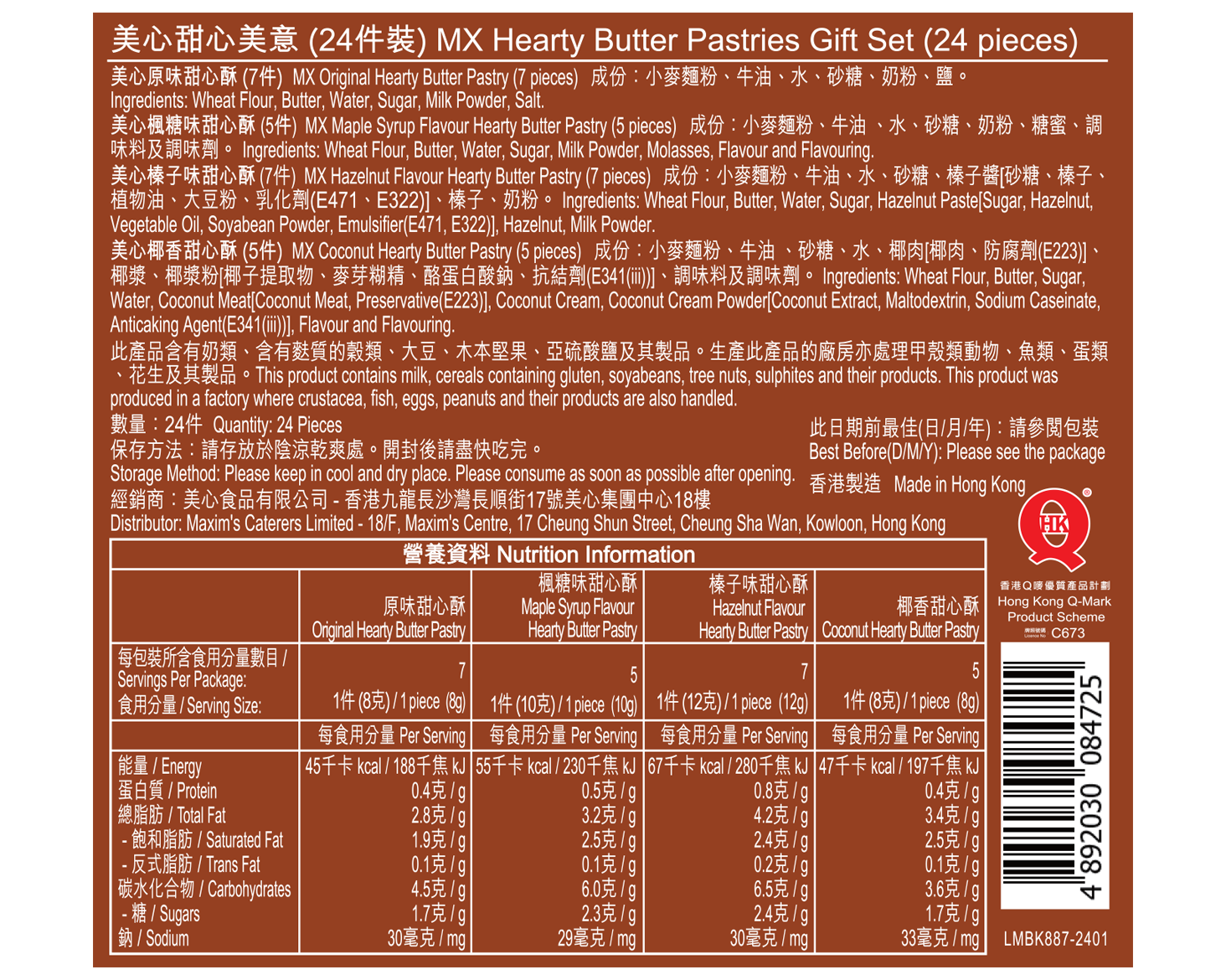 原味甜心酥 (7件) : 以紐西蘭牛油製作,配上雙重烘焗技術烘製出焦糖外皮,外皮香脆,內層鬆化