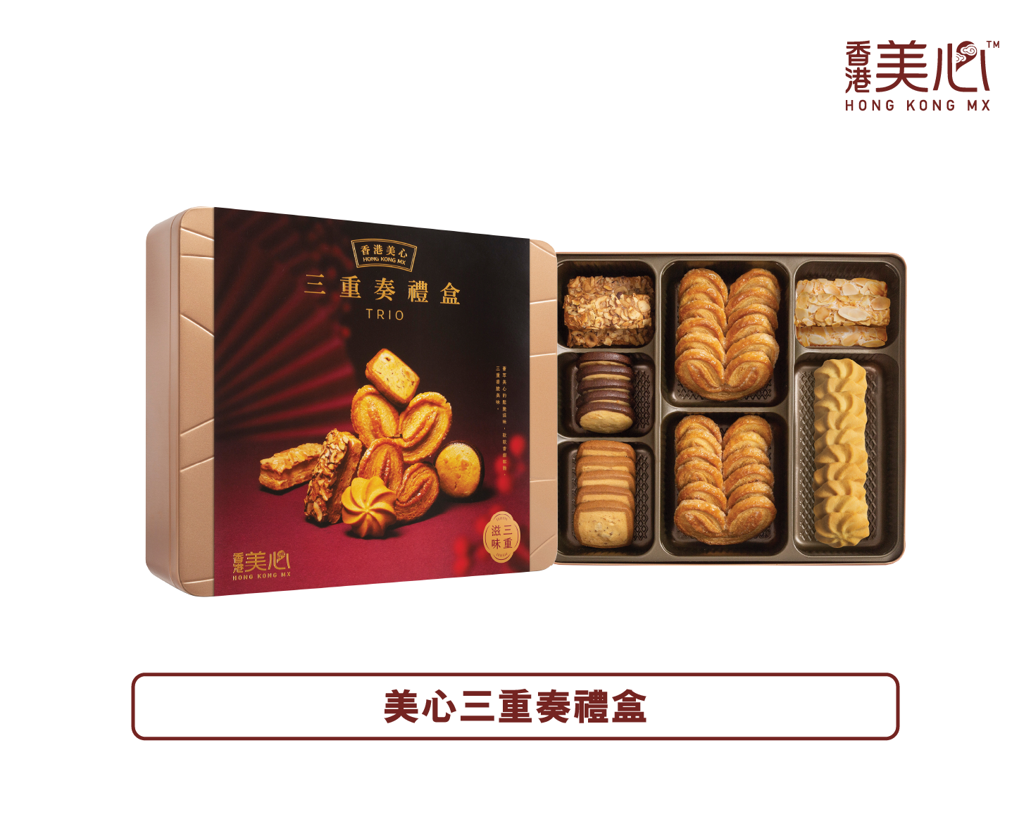 薈萃美心的鬆脆滋味,一盒集齊多款特色的餅食,當中包括曲奇、杏仁條及甜心酥,款款香甜鬆脆;金碧輝煌的禮盒,簡約貴氣,更添節日色彩;件件獨立包裝,送禮首選 !
