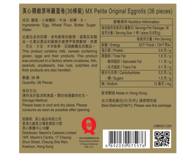 美心精緻原味雞蛋卷(36條裝)(現貨送貨)