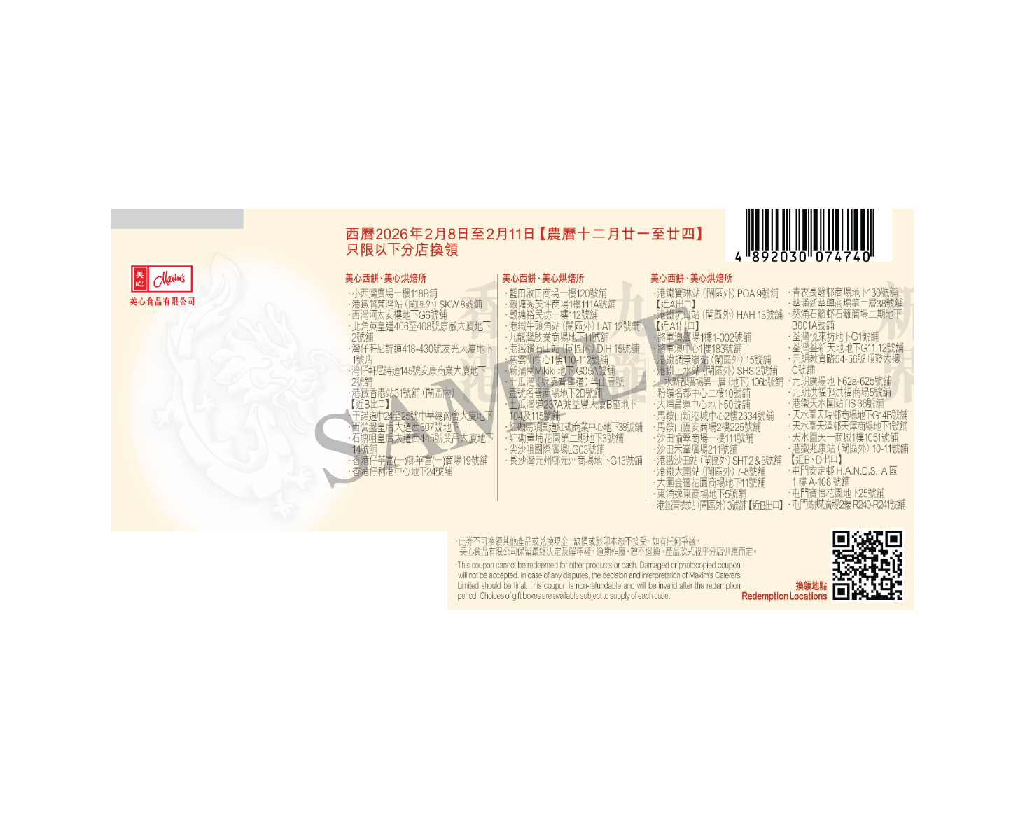 此服務受本網站的條款及細則所約束。如有任何爭議,美心將保留最終決定權。