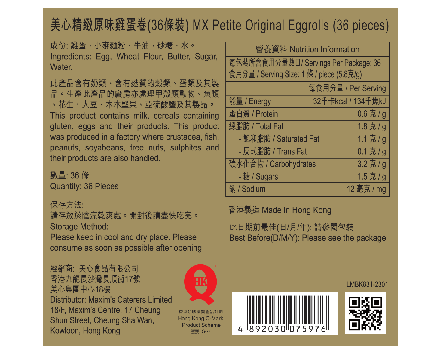 MX Petite Original Eggrolls (36pcs)