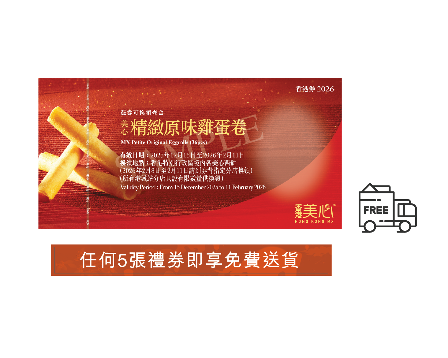 美心精緻原味雞蛋卷禮券(36條裝)(禮券送貨)