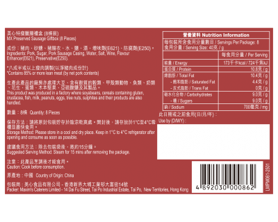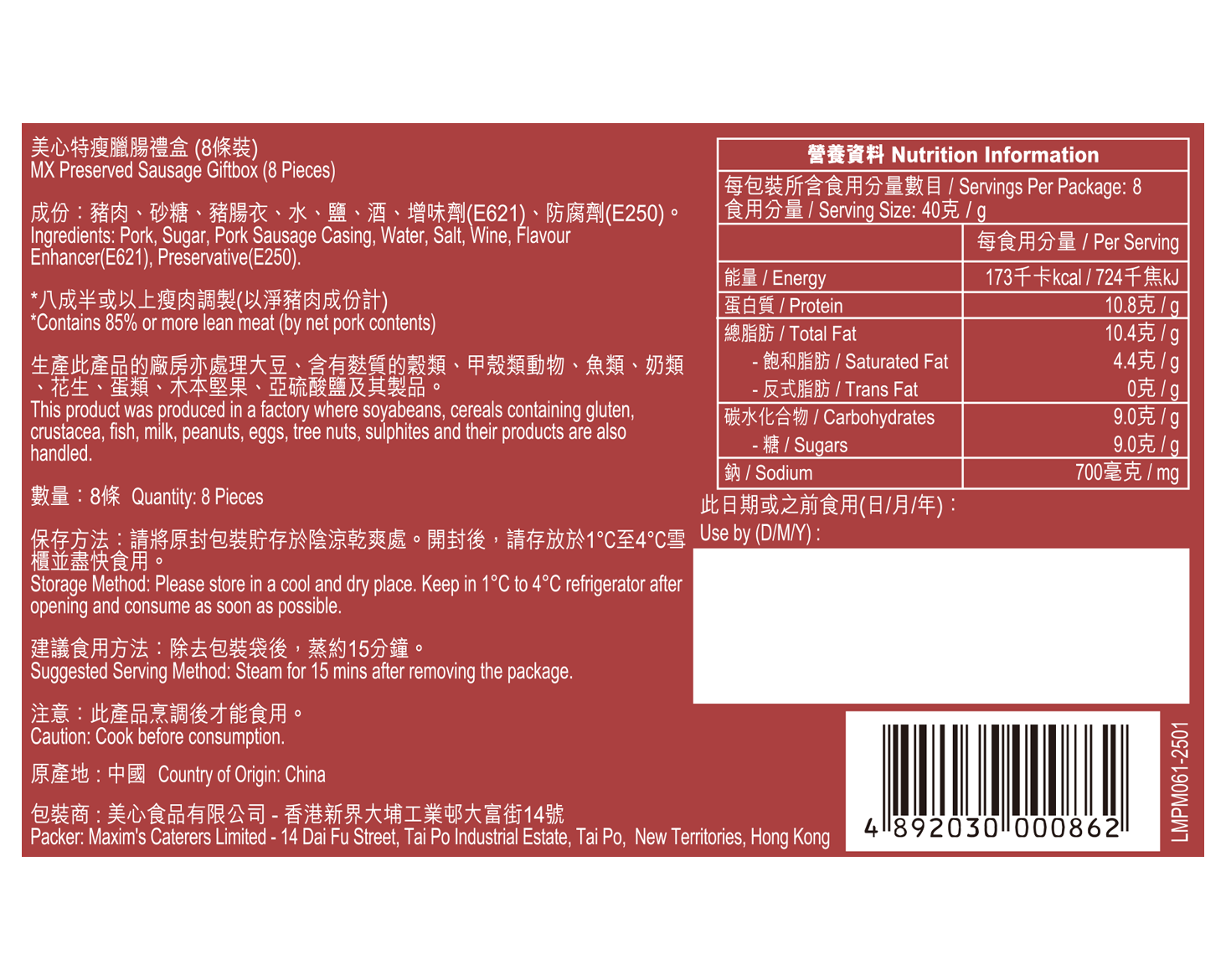 美心特瘦臘腸禮盒 (8條裝) (電子禮券)