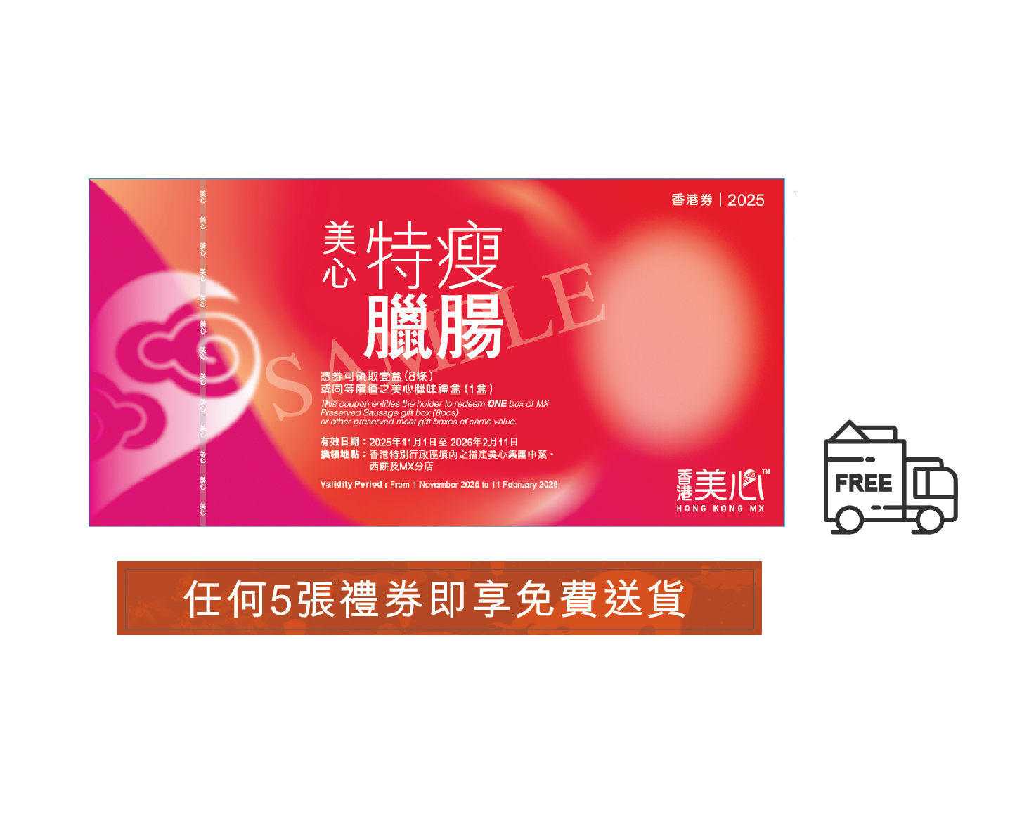 美心臘味禮盒禮券 (8條裝) (任選古法臘腸/鴛鴦臘腸/特瘦臘腸/甘香膶腸) (禮券送貨)