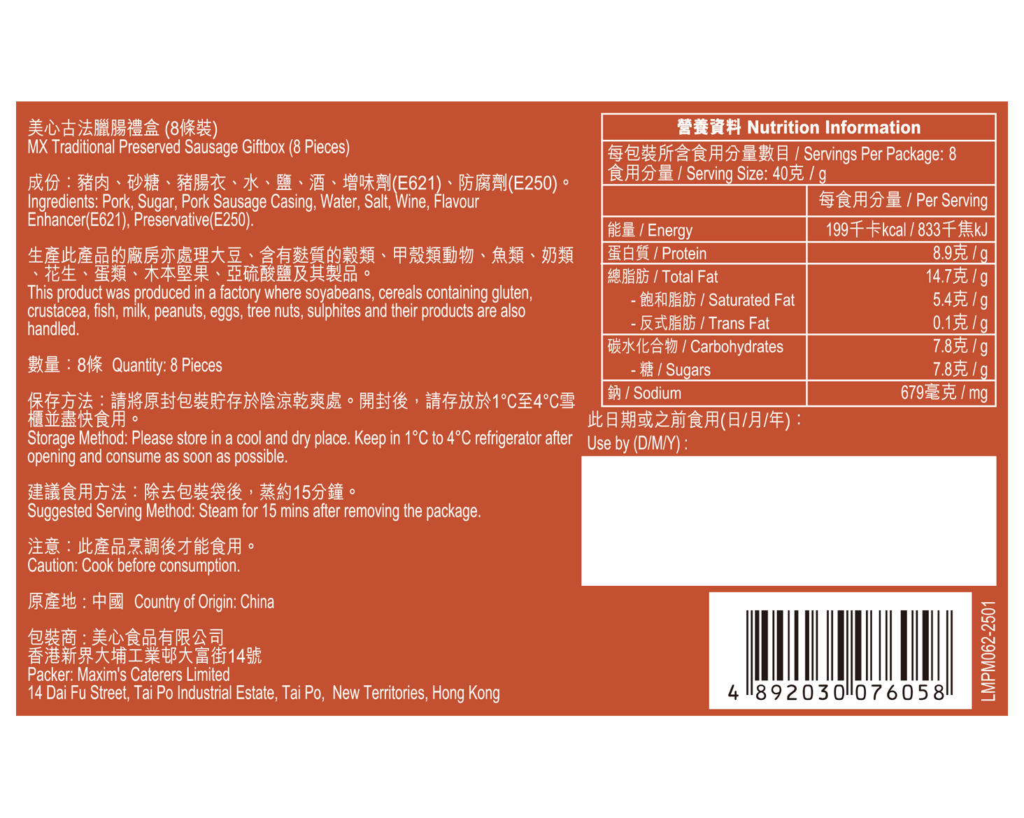 MX Traditional Preserved Sausage Giftbox (8pcs)