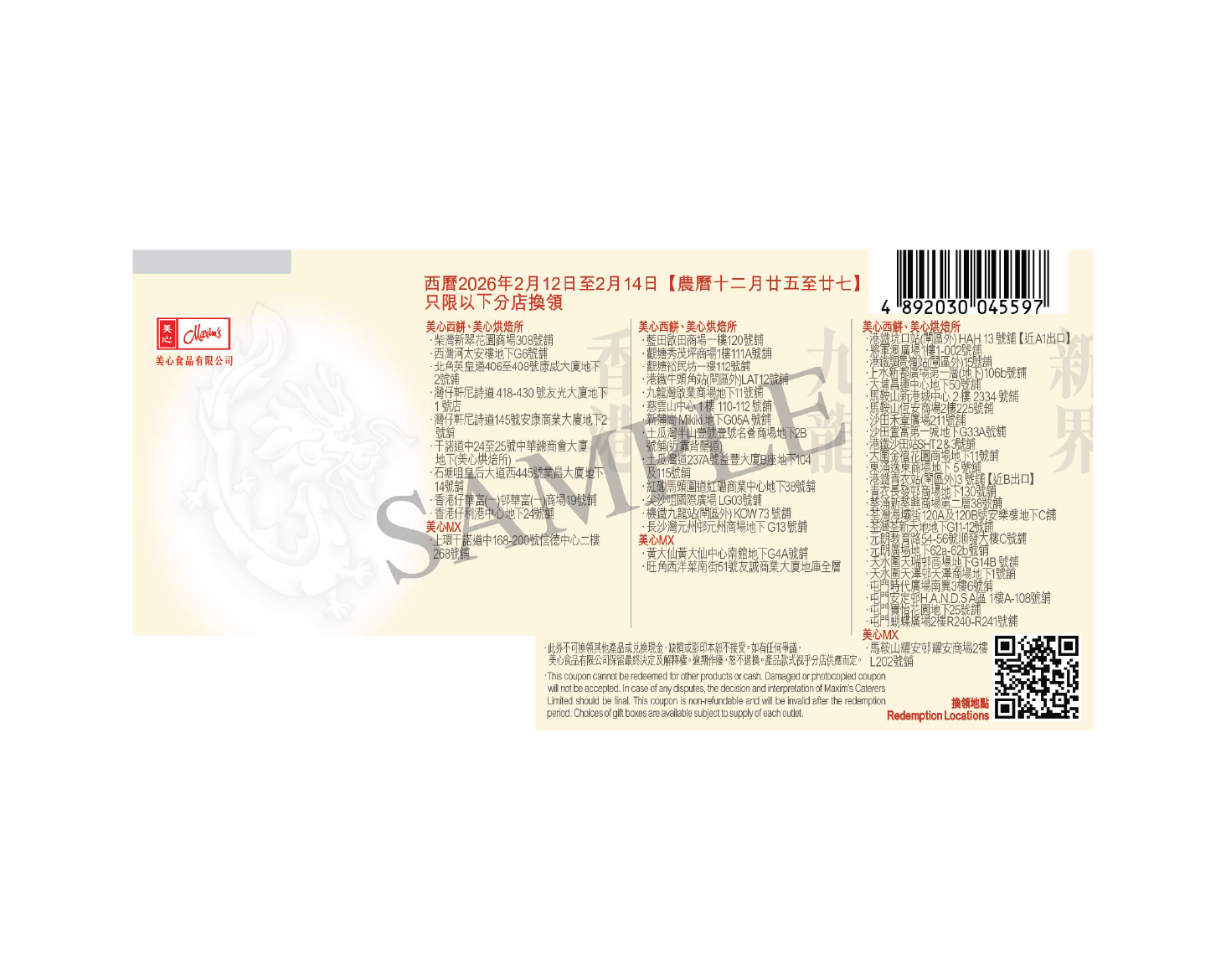2026年2月5日至2月11日 全線美心西餅及指定美心MX分店換領
